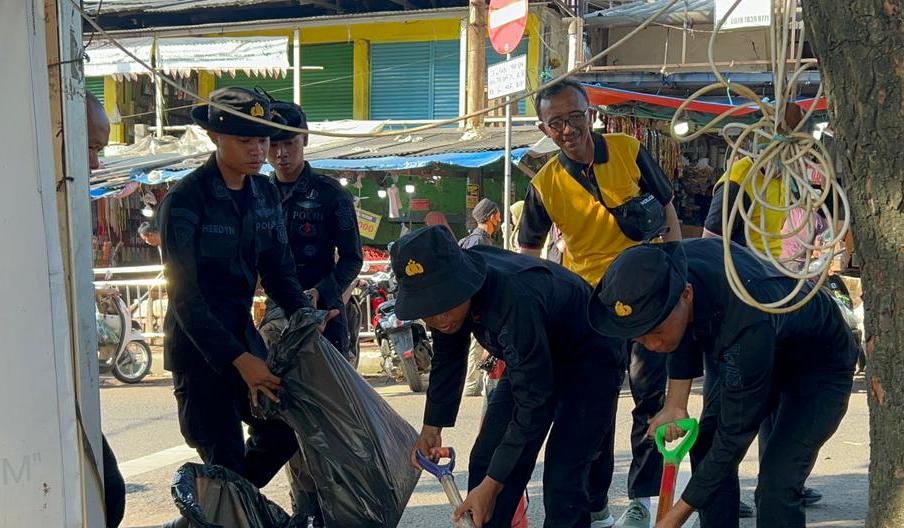 Brimob Polda Metro Jaya melalui Batalyon C Pelopor menggelar kegiatan Jumat Bersih di kawasan Ciputat, Tangerang Selatan, Jumat (24/4/2026).