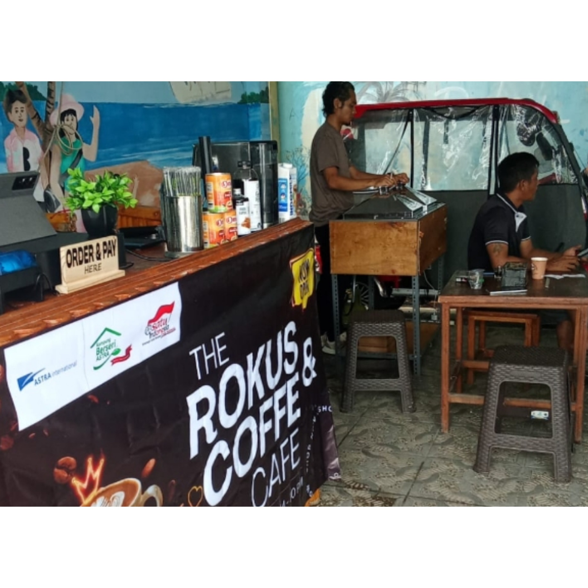 Desky merupakan bartender di cafe Pokdarwis Pulau Kelapa mengatakan, “Alhamdulillah Cafe yang bernama The Rokus & Coffee Cafe ini menyediakan makanan roti kukus dan beragam kopi espresso diminati wisatawan dan warga Pulau Kelapa”. Jelasnya