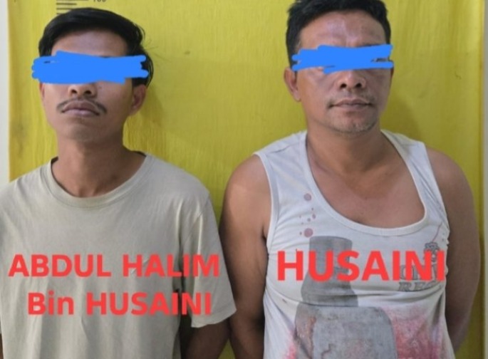 Sesampainya di lokasi yang dilaporkan kedua terduga pelaku tidak berkutik saat ditangkap oleh petugas sedang duduk Santa di bale sampling rumahnya.
