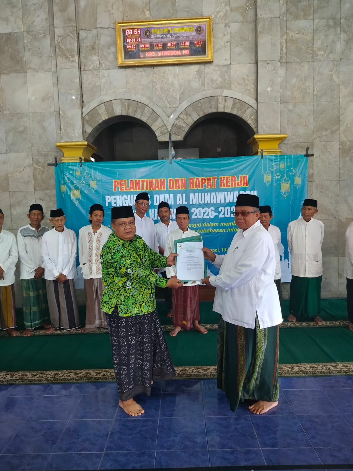 Pengurus Masjid Jami Al Munawwarah Gempol menyelenggarakan acara pelantikan dan Rapat kerja serta serah terima jabatan Dewan Kemakmuran Masjid (DKM) dari H.Santajci (Ketua DKM Jami Al Munawwarah Periode 2021-2026) kepada Ustadz Amin Syaeful Spd.i (Ketua DKM Jami AL Munawwarah Periode 2026-2026) sebagai penanda resminya Pengurus DKM periode 2026-2029. Minggu,(19/04).