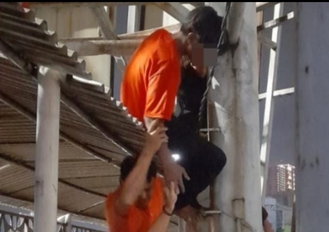 Setibanya di tempat kejadian, petugas mendapati pria tersebut masih berada di atas JPO dan diduga hendak mengakhiri hidupnya.
