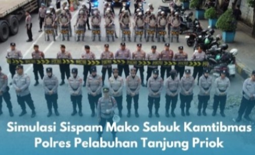 Polres Pelabuhan Tanjung Priok, memperkuat kesiapsiagaan menghadapi potensi gangguan keamanan dan ketertiban masyarakat (kamtibmas) maupun ancaman teror lewat simulasi Sistem Pengamanan Markas Komando (Sispam Mako) bersama Sabuk Kamtibmas, Jaga Priok, Jaga Jakarta Untuk Indonesia.